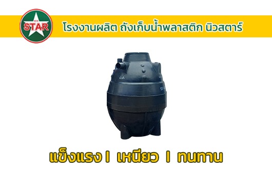 โรงงานผู้ผลิตและจำหน่ายถังเก็บน้ำใต้ดิน-บนดิน ถังบำบัดน้ำเสีย ถังดักไขมัน ถังแช่น้ำแข็ง ถังไฟเบอร์กลาส ภายใต้ตราสินค้า NEW STAR ถังเก็บน้ำนิวสตาร์ทุกแบบผ่านขั้นตอนการผลิตด้วยวิธีหลอมขึ้นรูปพลาสติก Rotomolding มาตรฐาน มอก. 1379-2551 เนื้อพลาสติกเหนียวทนต่อแรงดึงคงทนต่อแรงดันและทนแรงกระแทกได้ดี ทนแดดและแสงอุลตร้าไวโอเลทUV ไม่เปราะแตกง่าย อายุการใช้งานยาวนานคุ้มค่า น้ำหนักเบาเคลื่อนย้ายง่าย มีหลากหลายแบบให้เลือกใช้งาน รับประกันตลอดอายุถังเก็บน้ำ PE ยาวนานถึง 20 ปี
